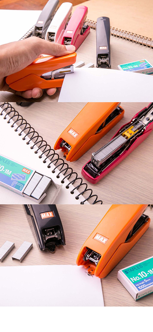 日本製造POWERFLAT雙排針型搭配新型機構,一次可釘張數達26張(70gsm影印紙),採用針腳平貼的平針裝訂,不僅裝訂輕鬆、穩定耐用,更能降低文件厚度,減少大批裝訂文件堆疊滑落風險。大容量針槽一次裝填100支釘書針,有效減少停機裝填次數,讓作業一氣呵成。尾端的拔釘器設計,拆裝訂超省力,釘書針不亂飛。