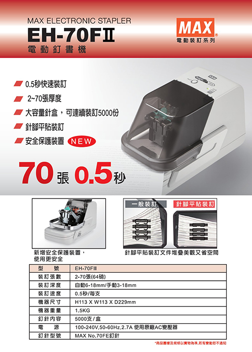MAX 美克司 電動訂書機 專用訂書針 No.70FE