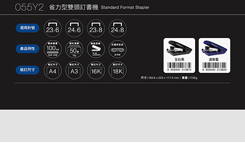 KW-triO 堡勝 055Y2 省力型雙頭訂書機/釘書機