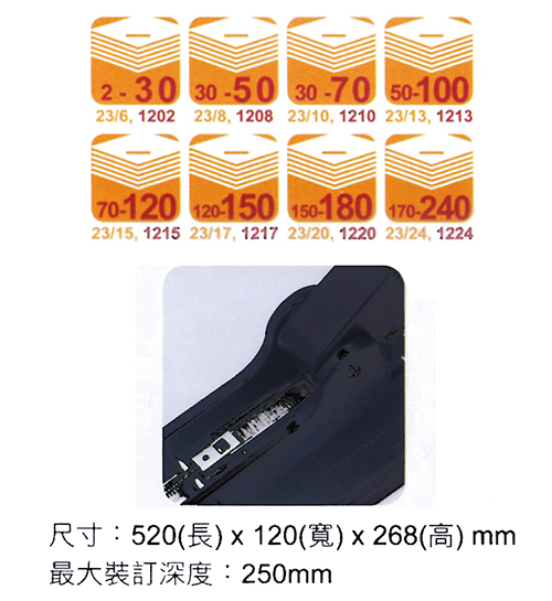 規格尺寸 :最大裝訂深度250mm
