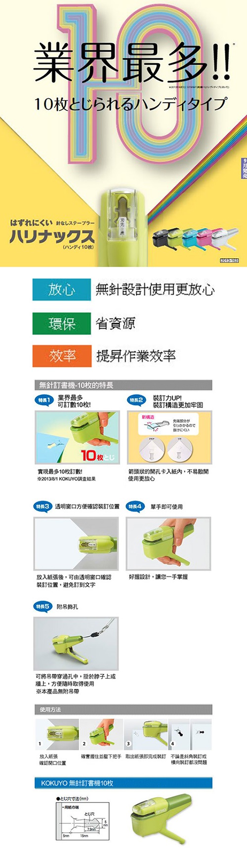 KOKUYO 10枚無針訂書機/釘書機 SLN-MSH110