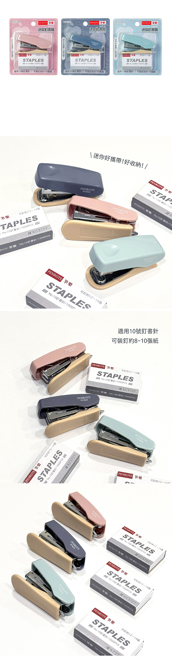 Penrote 承儀 KC4633 10號迷你訂書機/釘書機 混色出貨