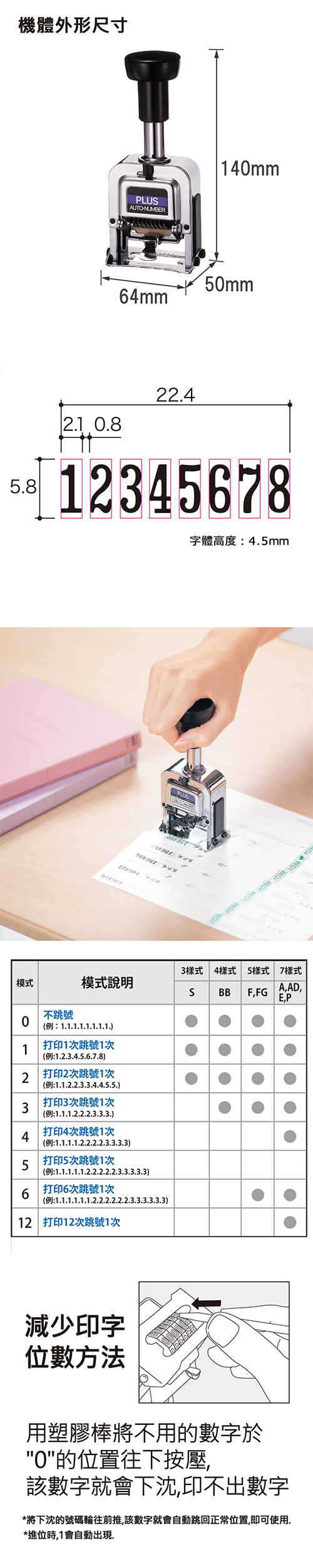 PLUS 普樂士 30-886 E型 8位自動號碼機