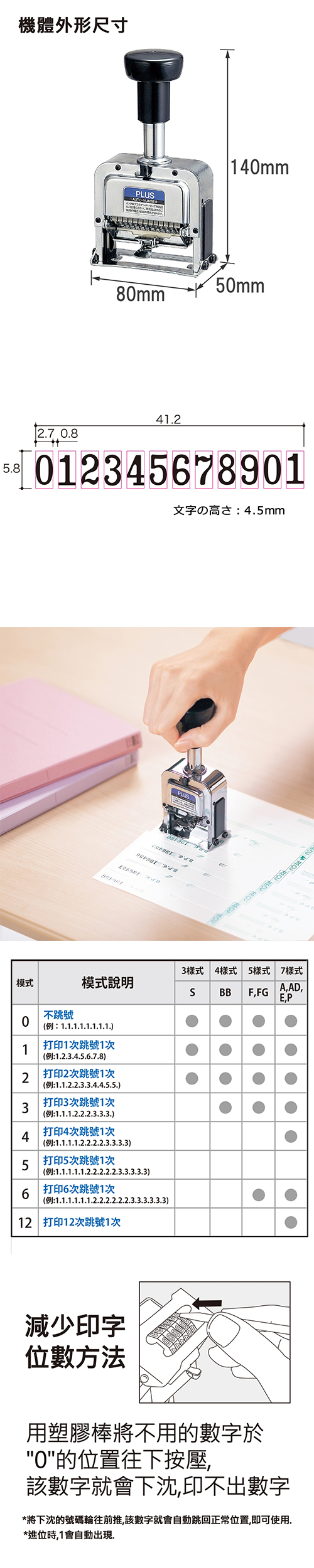 PLUS 普樂士 30-890 S型 12位自動號碼機