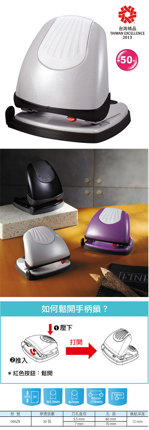 2.特殊鋼製刀刃,打孔俐落無聲,孔緣漂亮。