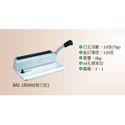 BAS 1500W雙鐵線圈裝訂機70P紙約10張
