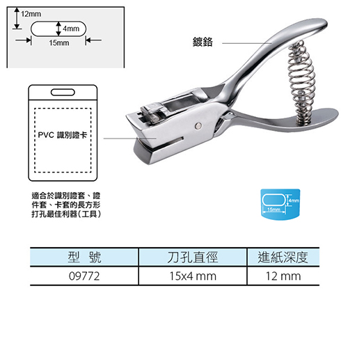 1. 橢圓孔寬為4mm ,用於打孔證件卡類