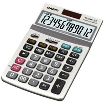 .12位數.金屬面板.可掀式面板.大型顯示幕.獨立記憶體.太陽能雙電力.快速輸入.成本/售價/利潤.百分比計算.利潤率計算.稅金計算.總和記憶器(GT).正負號.倒退鍵.千分位符號.尺寸 : 26.1x107x178.5mm.重量 : 170g
