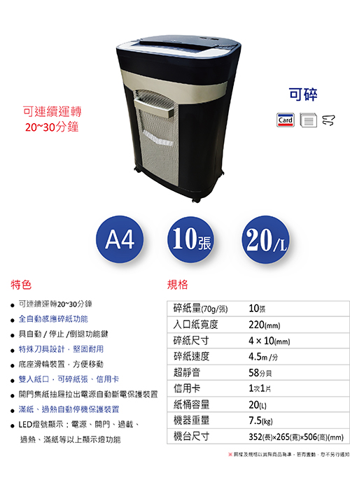碎紙速度 : 4.5m/分