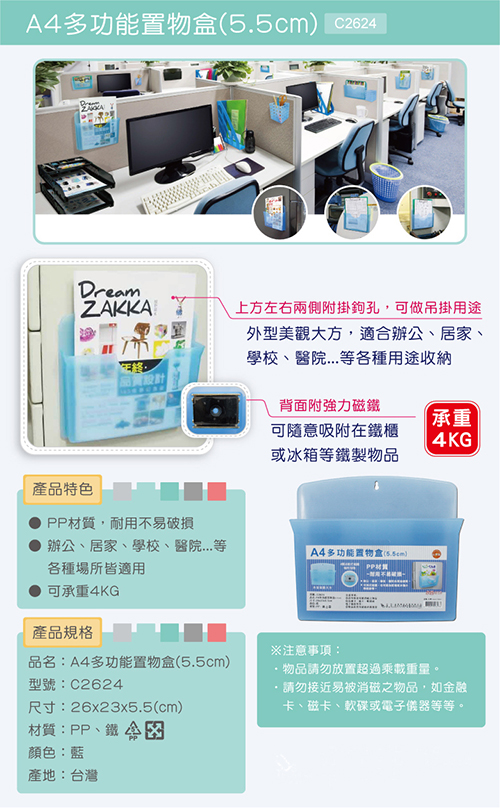 26x23x5.5cm顏色 藍、明墨 隨機出色A4尺寸美觀大方多功能收納盒PP材質,耐用不易破損辦公、居家、學校、醫院等各種場所皆適用背面附四顆磁鐵,可承重4kg若需指定顏色、可先詢問庫存數量是否足夠.如需訂貨約等候1~3天方可出貨(不含例假日)。