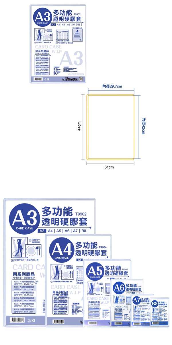 WIP台灣聯合 A3透明硬質膠套 44x31cm NO.T9902