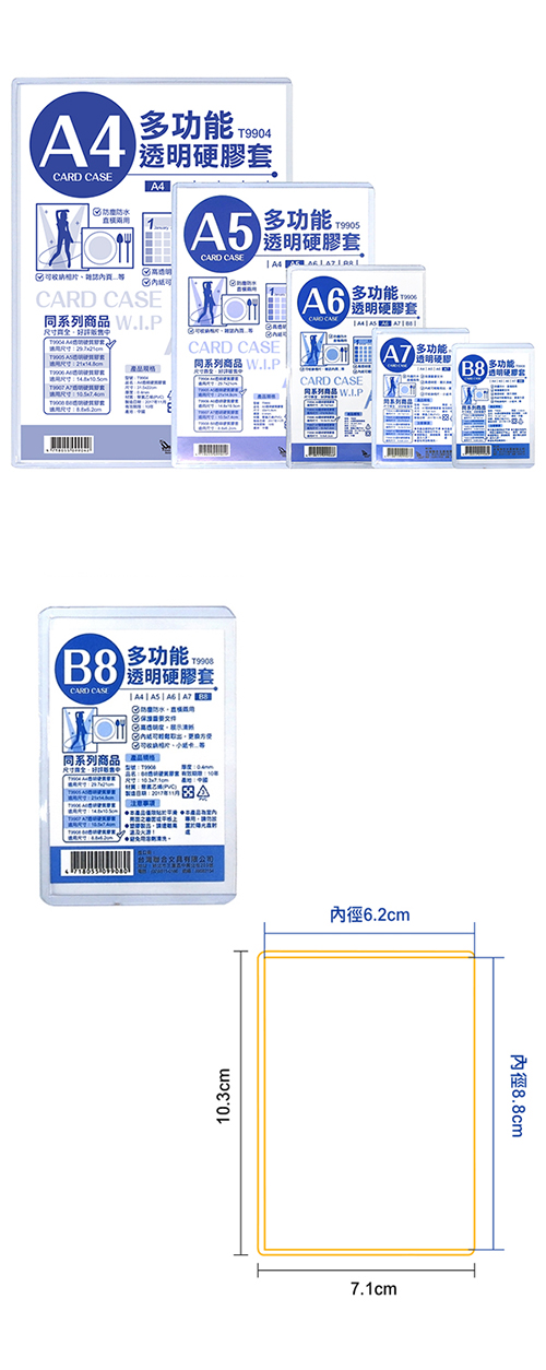 WIP台灣聯合 B8透明硬質膠套 10.3x7.1cm NO.T9908