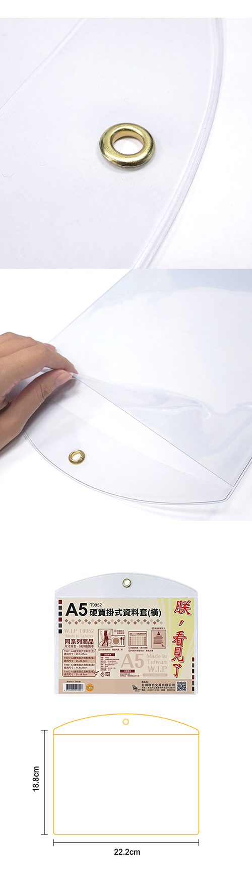 WIP台灣聯合 A5橫式硬質掛式資料套 22.2x18.8cm NO.T9952