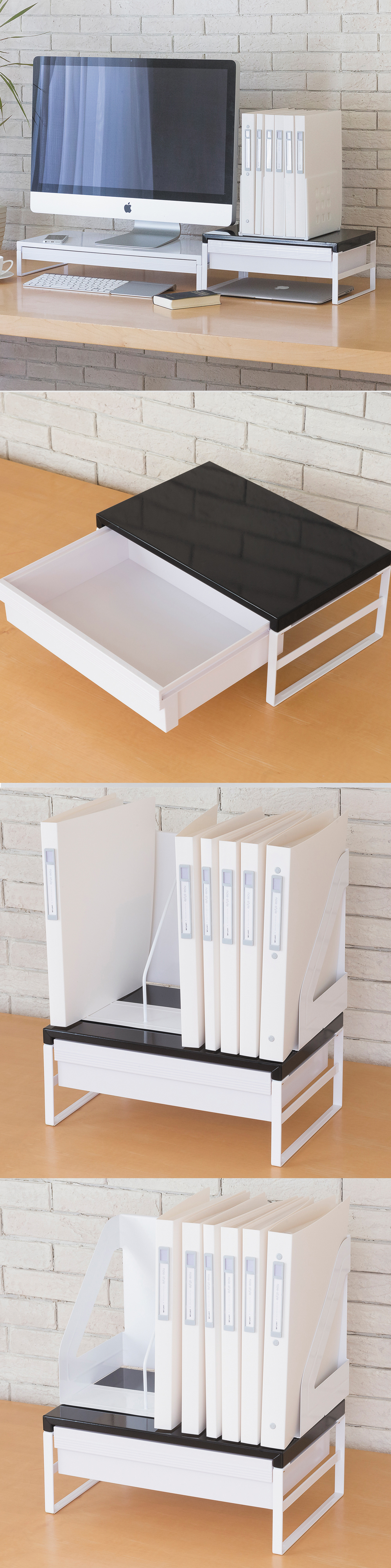 日本設計新潮文具????製材質、堅固耐用收納輕鬆、提升辦公效率上方可放電腦螢幕、電話、檔案文件、書靠等下方抽屜可放隨身用品、小物等390x250x100mm若需指定顏色、可先詢問庫存數量是否足夠。如需訂貨約等候1~3天方可出貨(不含例假日)。