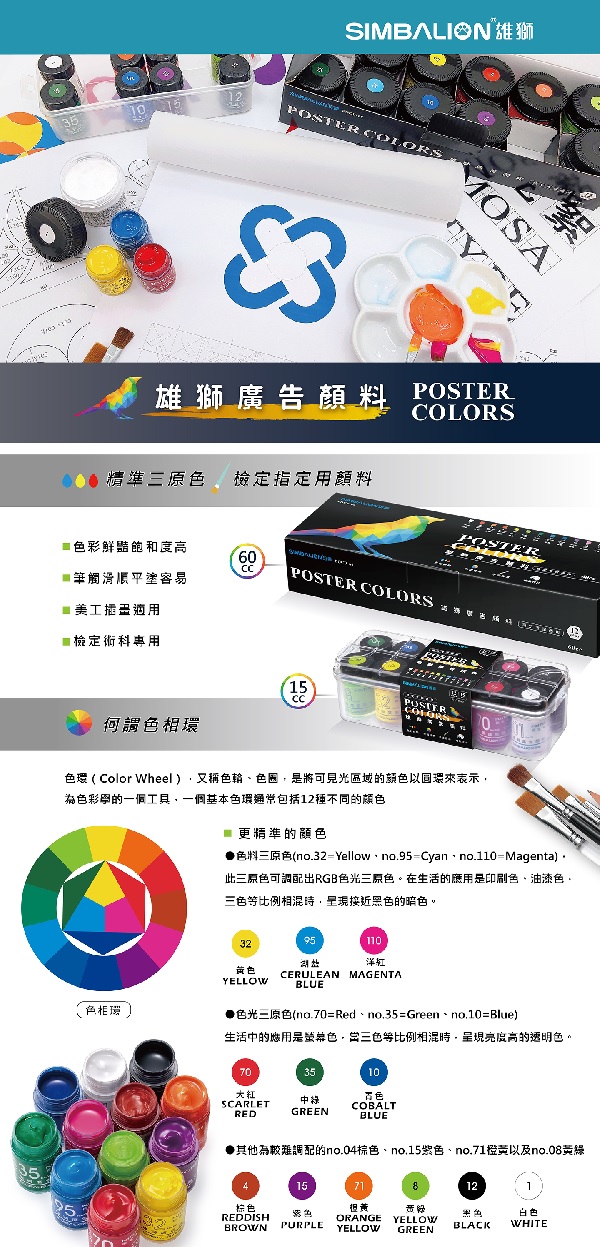 SIMBALION 雄獅 60cc廣告顏料-檢定考試適用 NO.POCD-60
