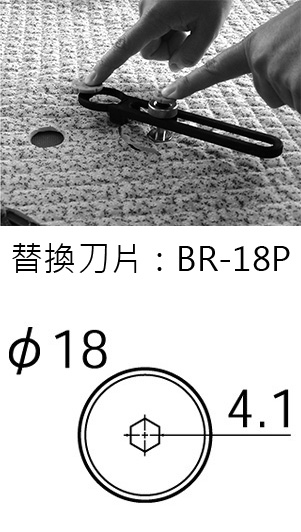 C-2000P為日本NT CUTTER新開發之產品可適用紙張、布等材質之割圓用切割方式為滾輪式,改良過去刀片固定,單靠刀尖來割圓之方式;並且過去割圓器會在所割成圓形內留下一個小孔,新發售C-2000P不會在圓形內留下小孔。切圓尺寸為3~22cm替換刀刃為NT BR-18P規格尺寸 : 92X230X43mm