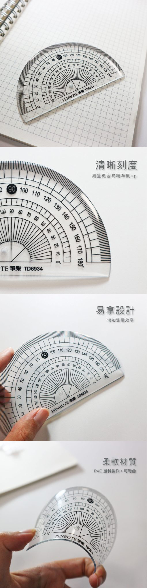 penrote 丞儀 TD6934 軟性半圓分度器/量角器 10cm 180度