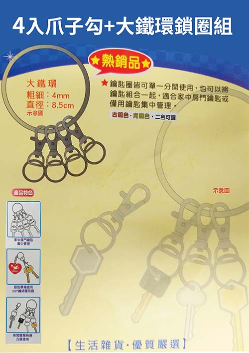 寶美 4入爪子鈎+大鐵環鎖圈組 大M91417-80
