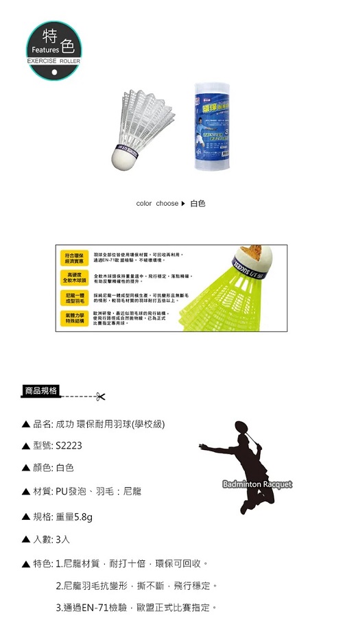SUCCESS 成功 學校級耐用羽球/羽毛球 (3入)/筒裝 NO.S2223