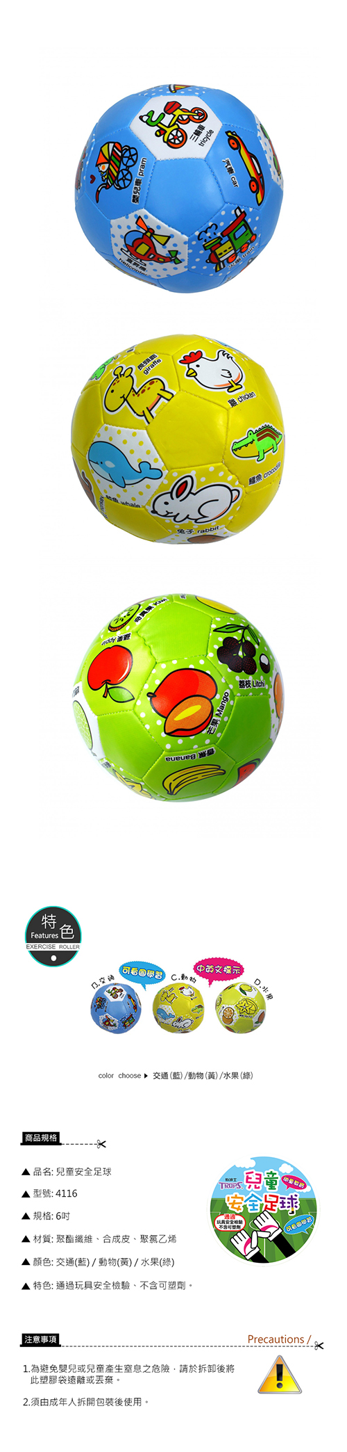 型號:4116款式:交通、動物、水果規格:6吋[材質] 聚酯纖維、合成皮、聚氯乙烯