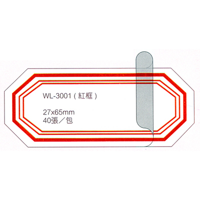 華麗牌 WL-3001 保護膜標籤 紅框 27x65mm 40張入