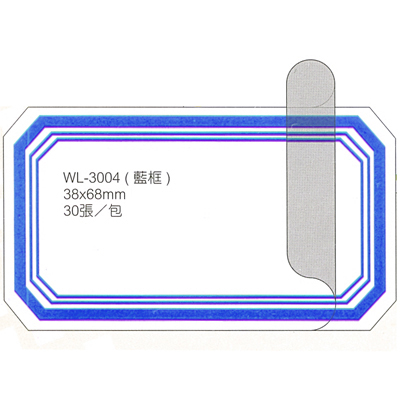 華麗牌 WL-3004 保護膜標籤 38x68mm 藍框 30張入