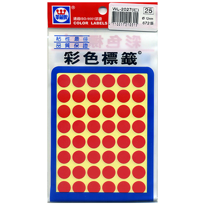 華麗牌 WL-2027R 彩色圓點標籤/圓形貼紙 紅色 ø12mm 672入