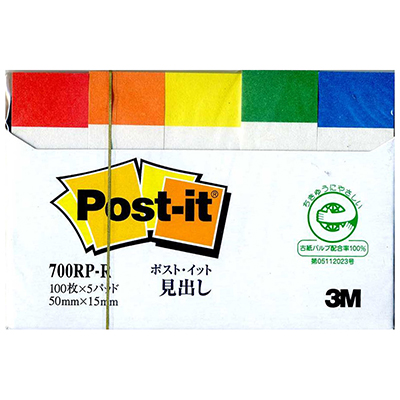 3M Post-it 利貼 700RP-R 可再貼 環保標籤紙 再生紙 5色 15×50mm