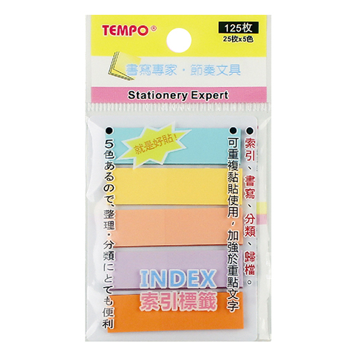 TEMPO 節奏柔色平頭五色索引標籤TP-303 44*13mm