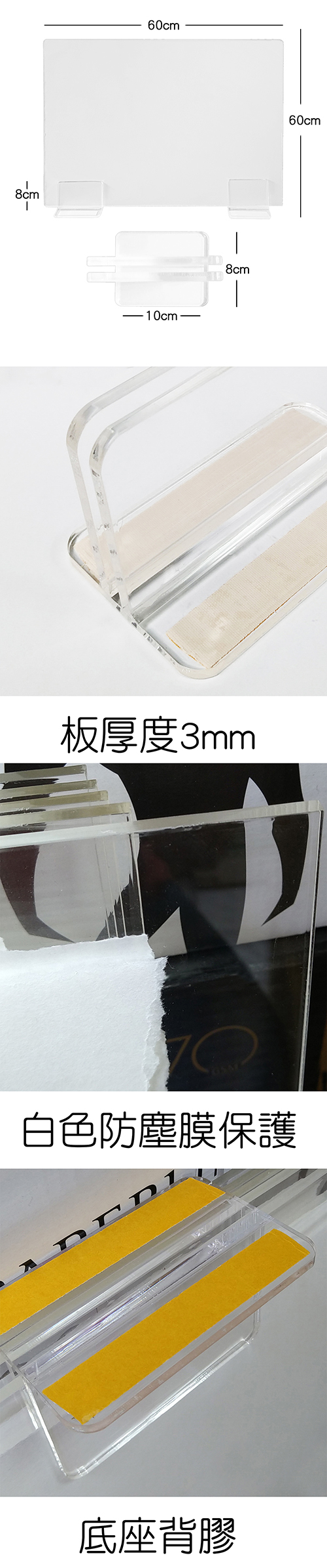 透明壓克力組合式防疫隔板60*60cm 板厚0.3cm含雙腳架(50組入)