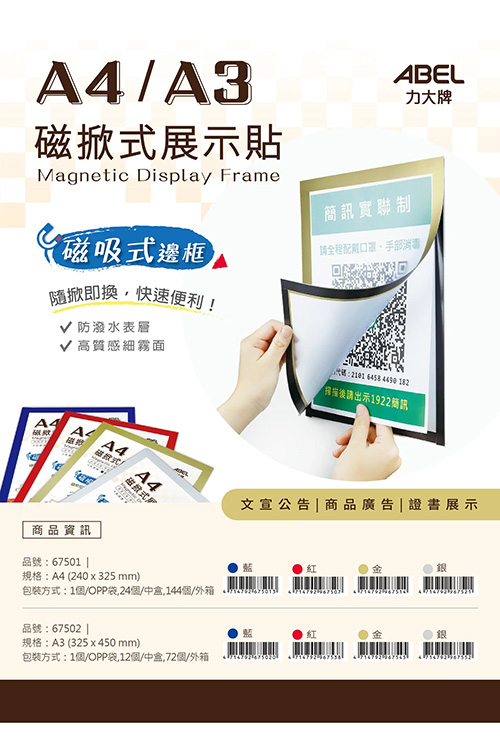 ABEL 力大牌 A4磁掀式展示貼 NO.67501