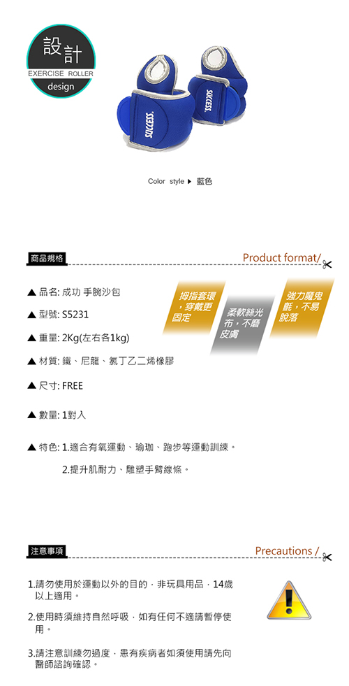 SUCCESS 成功 手腕沙包2kg S5231 (2入)