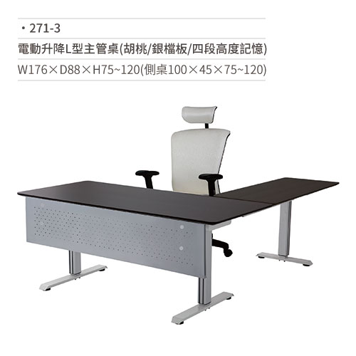 電動升降L型主管桌(胡桃/銀檔板/四段高度記憶) 271-3 W176×D88×H75~120