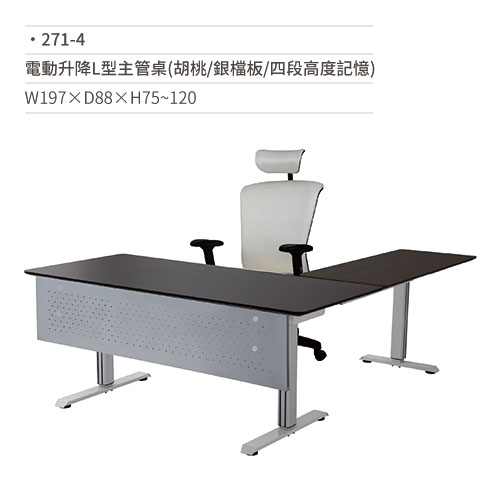 電動升降L型主管桌(胡桃/銀檔板/四段高度記憶) 271-4 W197×D88×H75~120