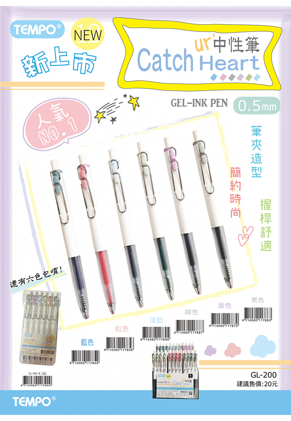 TEMPO 節奏 GL-200-6筆夾自動中性筆 0.5mm 六色組