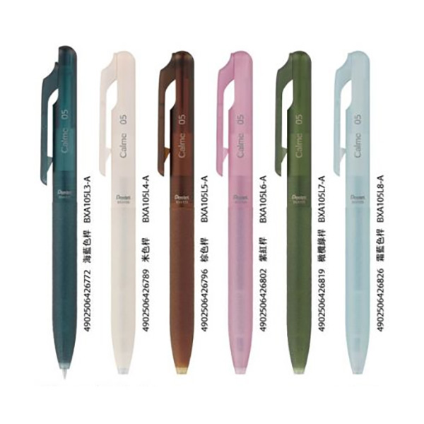 皮革質感握把、搭配半透明霧面磨砂玻璃質感筆桿、並俱備降噪按壓設計的Calme靜暮輕油性筆