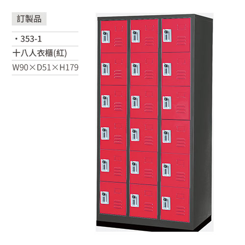 十八人衣櫃(紅) 353-1 W90×D51×H179 訂製品