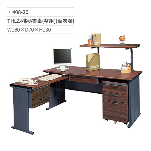 THL胡桃秘書桌/電腦桌/辦公桌(整組/抽屜有鎖/深灰腳)408-20 W180×D70×H130