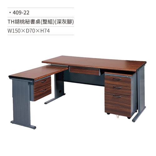 TH胡桃秘書桌/電腦桌/辦公桌(整組/抽屜有鎖/深灰腳)409-22 W150×D70×H74