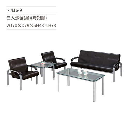 溫莎三人沙發(黑/烤銀腳)416-9 W170×D78×SH43×H78