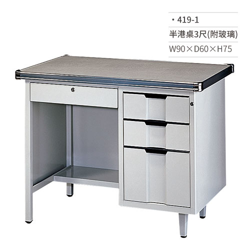 半港桌3尺/辦公桌(附玻璃/右三屜)419-1 W90×D60×H75
