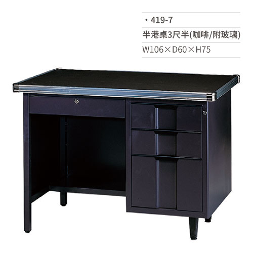 半港桌3尺半/辦公桌(咖啡/附玻璃/右三屜)419-7 W106×D60×H75