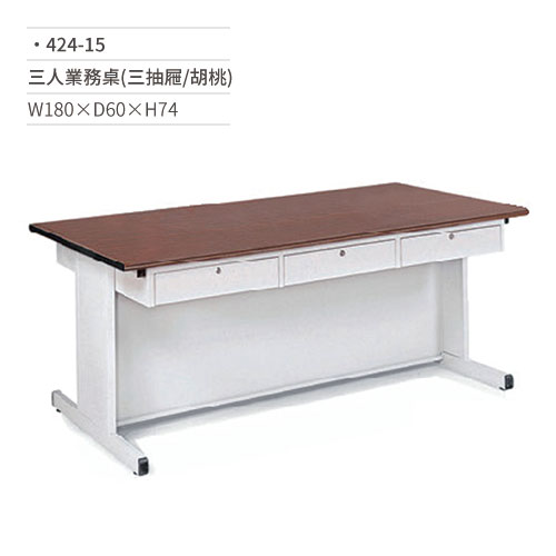 三人洽談桌/業務桌(三抽屜/胡桃)424-15 W180×D60×H74