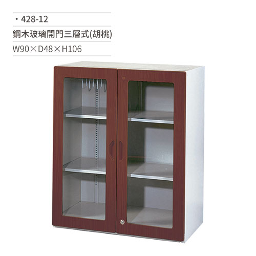 鋼木櫃玻璃(開門三層式/胡桃)428-12 W90×D48×H106