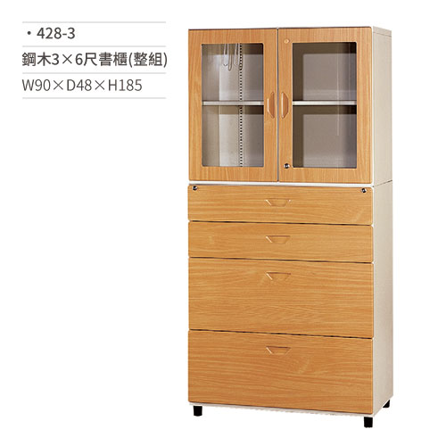 鋼木3×6尺牆櫃(整組/開門二層四抽屜)428-3 W90×D48×H180