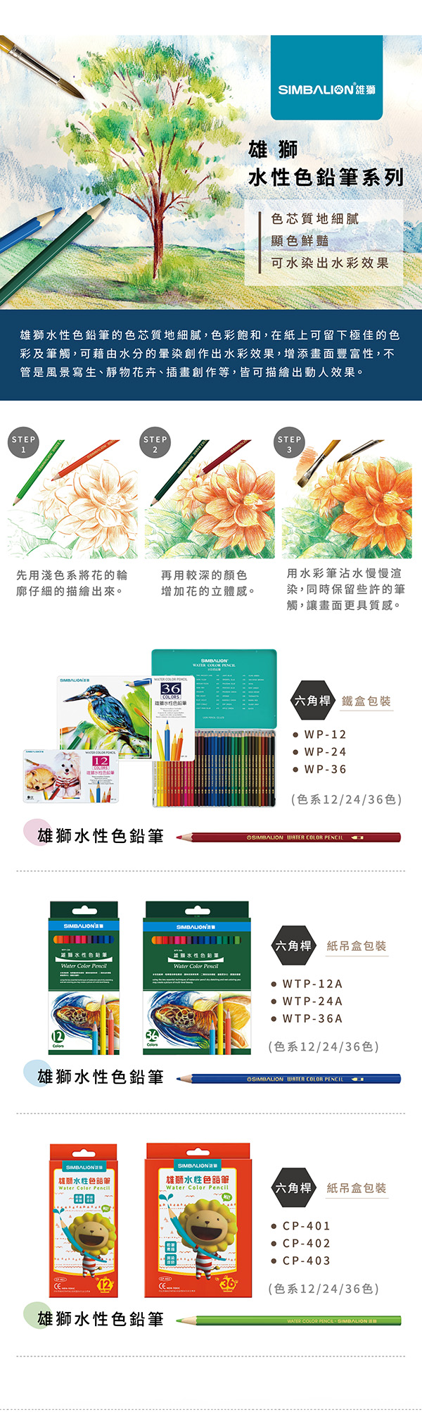 SIMBALION 雄獅 24色水性色鉛筆紙盒 NO.WTP-24A