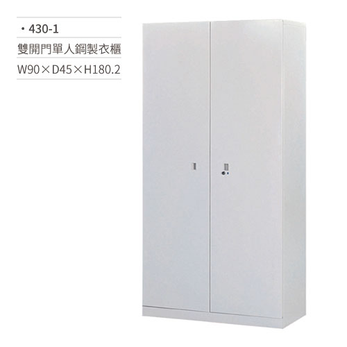 單人鋼製衣櫃(雙開門)430-1 W90×D45×H180.2