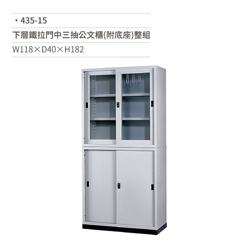 下層鐵拉門中三抽公文櫃(附底座/整組)435-15 W118×D40×H182