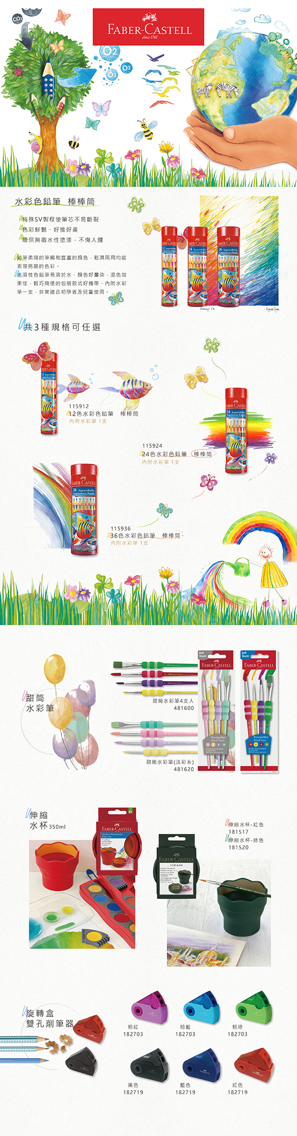 Faber-Castell 輝柏 進口24色水性色鉛筆精緻棒棒筒附水彩筆.水杯 115924