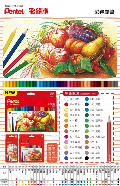 Pentel 飛龍牌 CB8-36TH/TW 36色紙盒色鉛筆/彩色鉛筆
